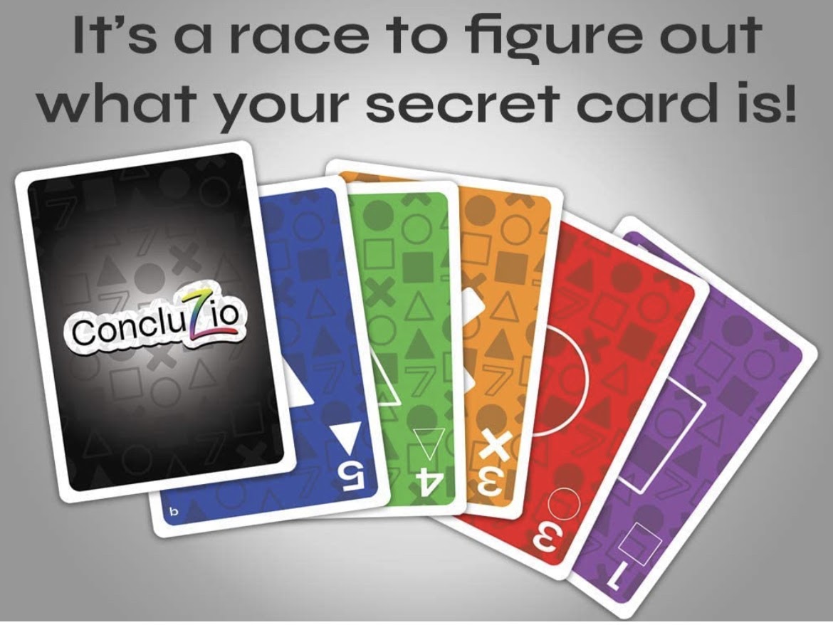 Put your deduction skills to the test in the family-friendly card game, Concluzio! Race against your opponents and be the first player to correctly guess your secret clue card. Use logic and reasoning to correctly figure out the shape, number and colour of your secret card.