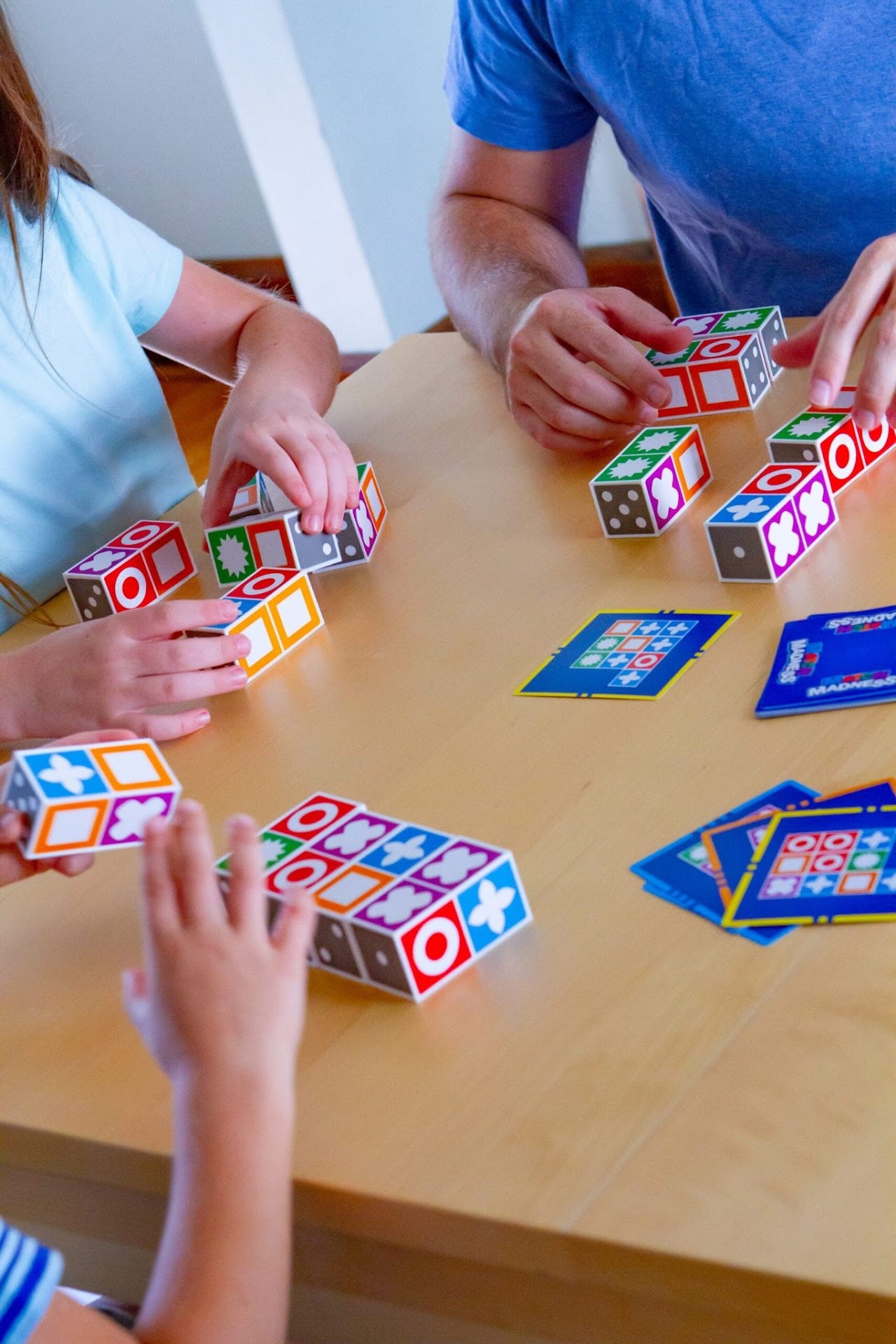 Let the furious fun begin! Players sprint to arrange a set of 5 blocks so that they match a pattern shown on a card. First player to succeed grabs the card and a new matching race starts. Tensions rise as you scramble to outpace and outsmart your opponents in this ingenious game of perception. So fire-up your neurons and be transported by Match Madness!